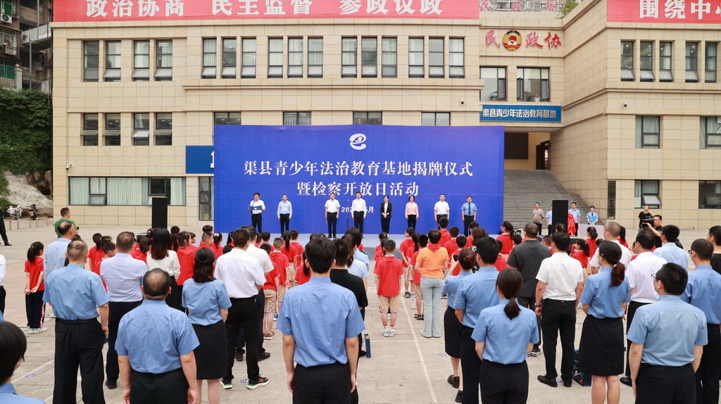 5月29日,渠县青少年法治教育基地揭牌仪式暨检察开放日活动在渠县人民检察院法治广场举行,达州市检察院党组书记、检察长陶成,四川省检察院第九检察部主任陈王莉出席活动。渠县县委副书记、县长王飞到会致辞,渠县县委常委、县政府常务副县长夏华勇主持揭牌仪式。陶成、陈王莉、王飞、钱文军共同为渠县青少年法治教育基地揭牌。