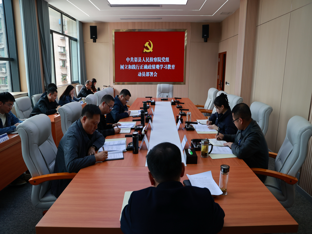 3月13日,渠县检察院召开党组(扩大)会议,专题学习习近平总书记关于树立和践行正确政绩观学习教育的重要讲话和重要指示精神,研究部署本院学习教育工作。院党组书记、检察长钱文军主持会议,各部门负责人参加会议。